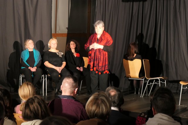 Peu avant la lecture, Françoise MARKUN, comédienne chanteuse et fondatrice de la compagnie ARKIVI a aidé les volontaires à préparer le spectacle. A 19 heures, les lecteurs et chanteurs de tous âges étaient prêts et ils ont conquis leur auditoire, charmé par l’originalité et la qualité de cette soirée.
