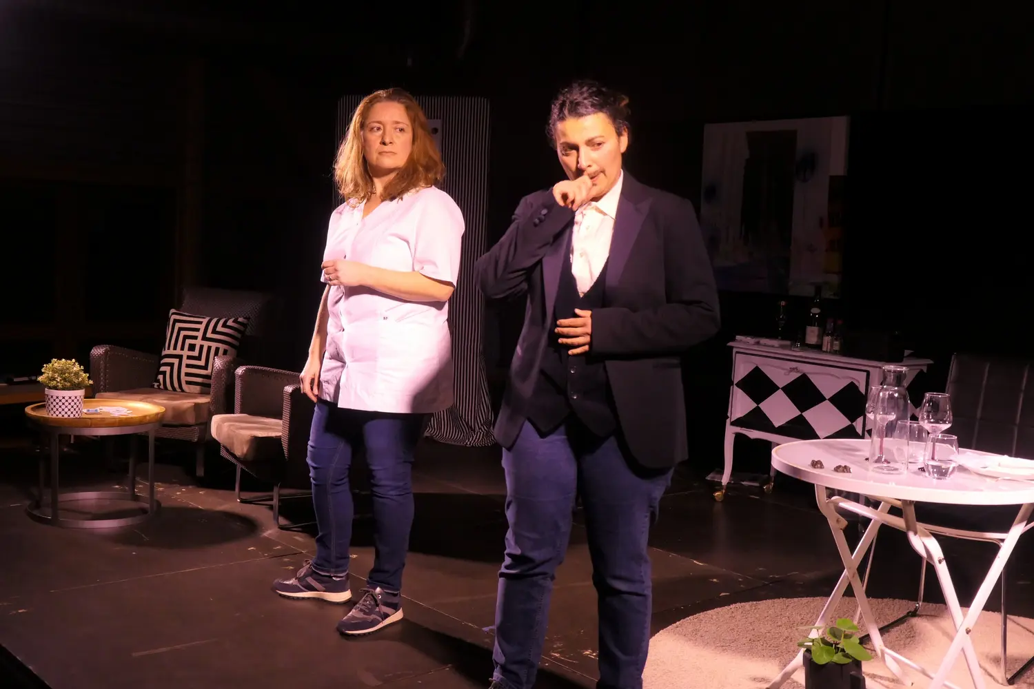 Samedi, les comédiens des Masques des voix présents sur scène étaient : Guy DIDIER, Moïse DIKONDO, Evelyne FRISQUET, Serge RENDA Pierre SHOTT et Sandrine VILLEMIN ; en régie, Daniel HENRIET assisté de Dominique FRISQUET. Les comédiens des Complices étaient : Fabien MEDINA, Olivia LEHERISSEY, fondateurs de la Compagnie ainsi qu’Evelyne MONNET.