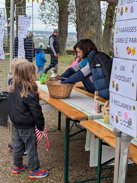 Les chasseurs d’œufs ont courageusement monté et descendu les sentiers sinueux du parc écologique situé en contrebas du belvédère de l’Esplanade. En ce début de printemps, une prairie bien fournie entourait les chemins de gravier et recélait plein de cachettes à découvrir pour obtenir la récompense en chocolat. Aidés par leurs parents, les enfants ont passé un moment privilégié dans ce paysage verdoyant. Cette rencontre qui s’installe parmi les traditions de la commune a été mise en place par la Municipalité et les services techniques. Tout le monde les remercie.